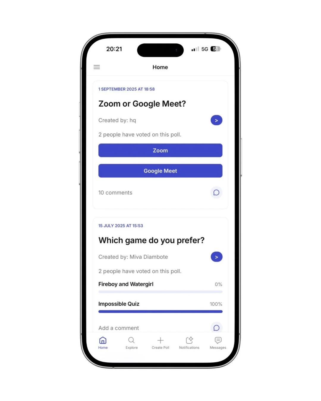 The Poll App is a voting social media platform created to make decisions on issues you can about. The Poll App was also created to give people the power to make an influence by voting.